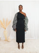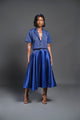 Button Down Batik Shirt with Plain Puff Sleeves Blue